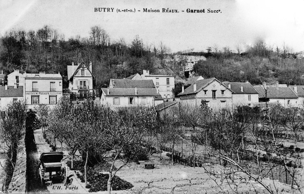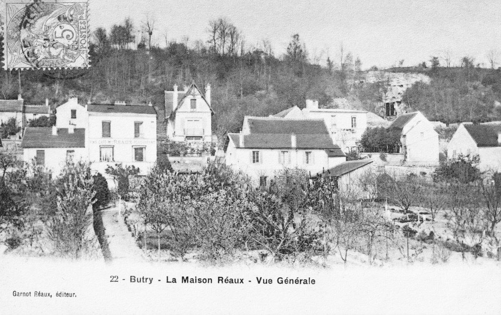 En 1900, la Grande Rue de Parmain à Butry est une rue commerçante animée sous le coteau du plateau du Vexin. En son centre, la Maison Réaux est un restaurant populaire (aujourd’hui devenu la pharmacie Helias) à l’arrière duquel, on trouve un verger.