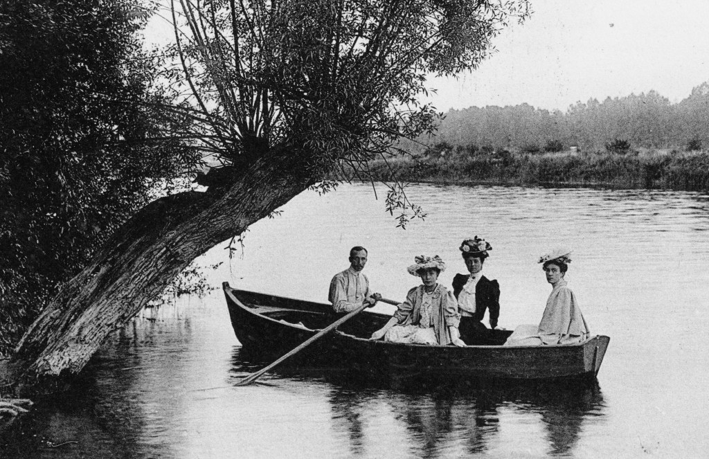 Même si le canot est un loisir, les dames de la bourgeoisie ne se relâchent pas pour autant. Corsets et chapeaux de modistes restent de rigueur pour la balade sur l’eau.