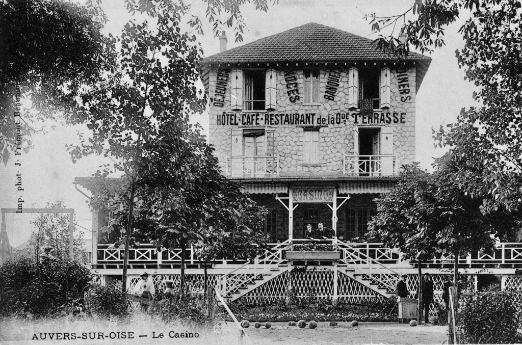 Quelques années après la mort de Van Gogh dans le village d’Auvers-sur-Oise, que trouve-t-on au bord de l’Oise sous le plus célèbre clocher de l’histoire de la peinture ?… Un bateau-lavoir et un hôtel qui, comme les guinguettes de Butry-Plage, fait office de café et restaurant mais abrite aussi une salle de casino.