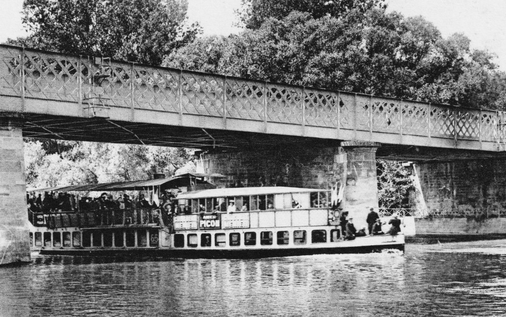 L’été, des bateaux à vapeur pleins à craquer passent sous le pont de Butry, sous les yeux des clients des guinguettes de Butry-Plage.