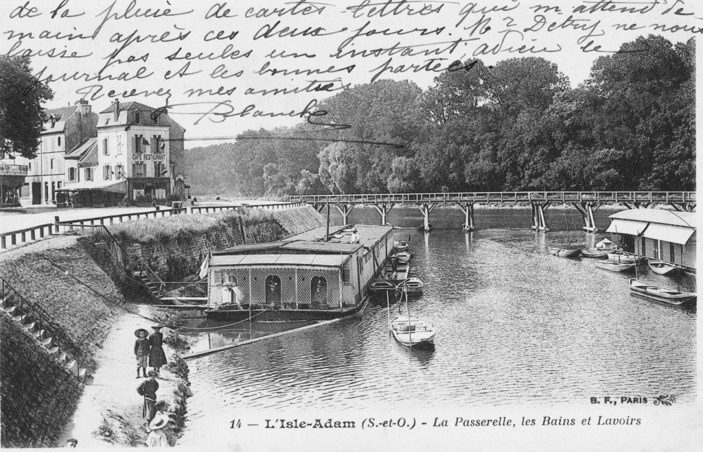 A l’Isle-Adam, un grand bateau lavoir équipé offrait un toit et donc un peu de confort aux laveuses. Il servait également de bain public.