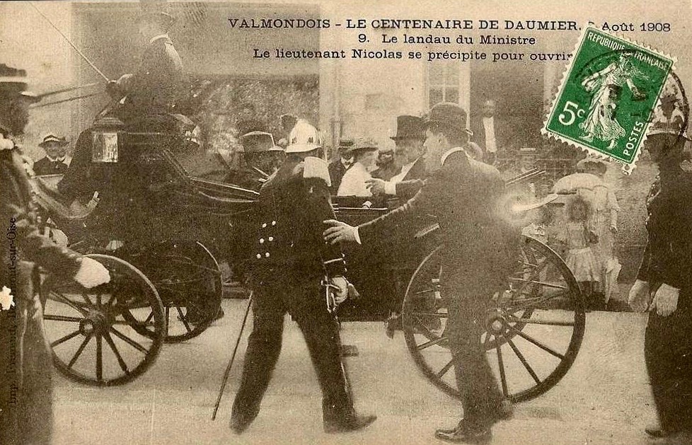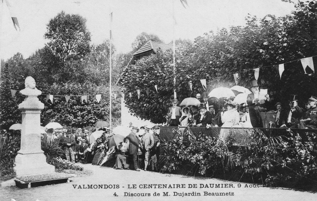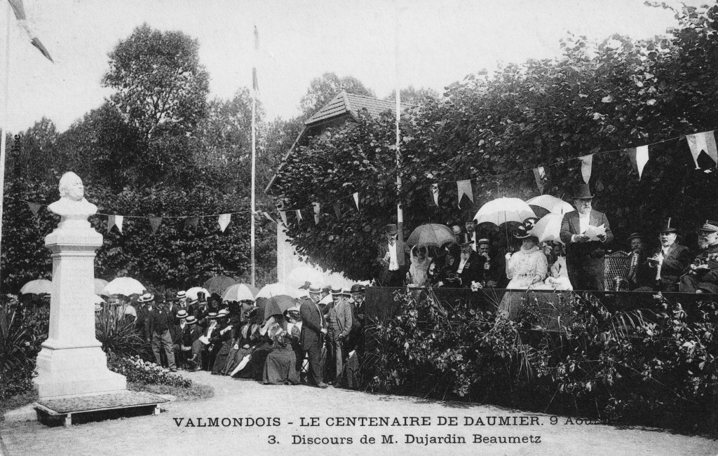 Peut-on imaginer un ministre se rendre en grande pompe à Valmondois ? Et qui pourrait croire qu’un tel ministre soit accompagné d’une des plus grandes actrices du moment ? Et pourtant, ceci a bien eu lieu à la fin de la Belle Epoque, le dimanche 9 août 1908. Une grande manifestation était organisée pour célébrer le centenaire de la naissance du peintre et caricaturiste Honoré Daumier, mort en 1879 à Valmondois. Une nouvelle cérémonie aura lieu en 2008 pour le bicentenaire mais elle sera bien plus modeste.
