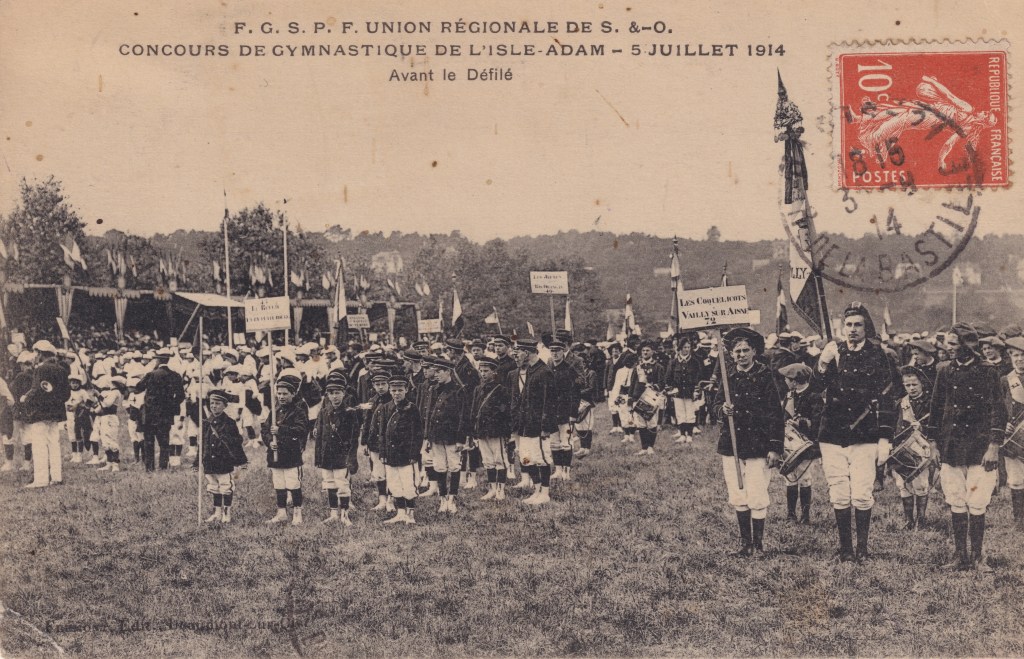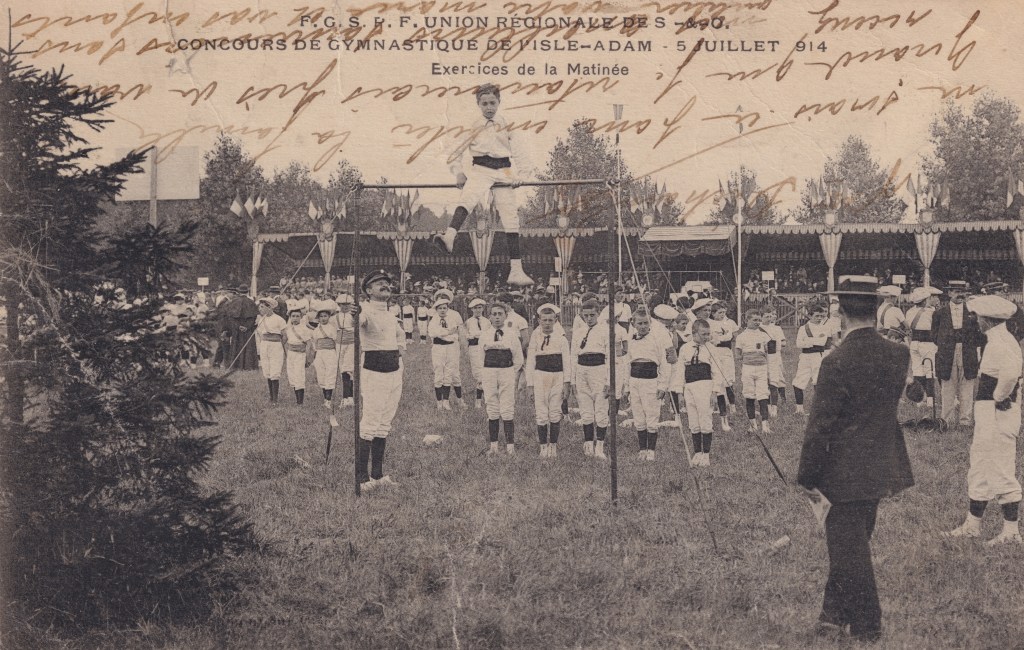 Moins d’un mois avant la mobilisation générale qui sera décrétée le 2 août en France, l’atmosphère est pesante en ce mois de juillet 1914. Le dimanche 5 juillet, une compétition de gymnastique prévue de longue date a néanmoins lieu à l’Isle-Adam.