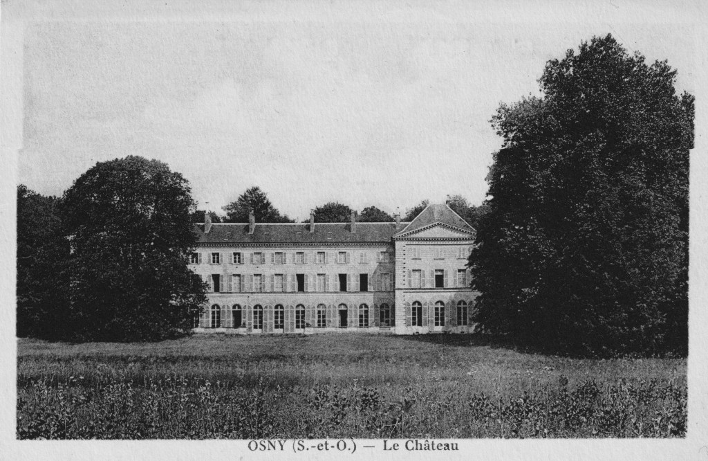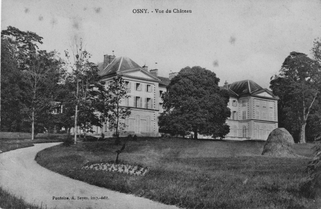 A l’époque des photos, le bâtiment néoclassique du château de Grouchy à Osny est la propriété de Frédéric de Reiset, gouverneur de la succursale de la Banque de France à Lorient. Sa famille hérite du château qui sera occupé par les Allemands jusqu’en août 1944.