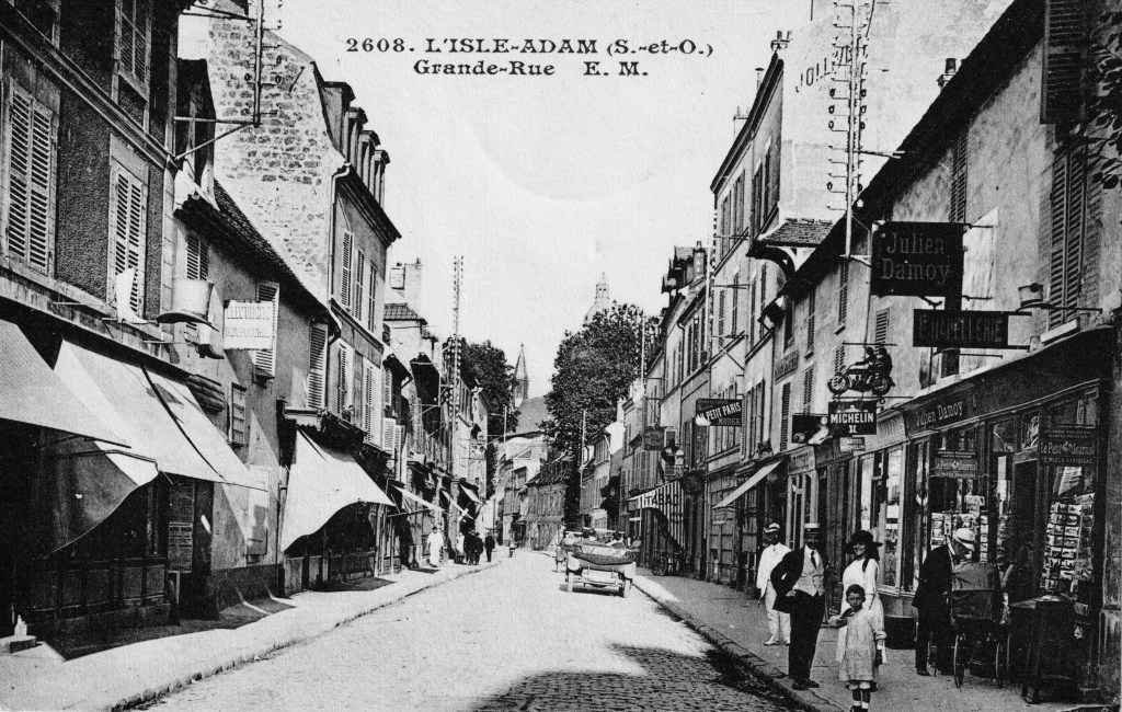 La Grande Rue est la plus ancienne rue de L’Isle-Adam. A l’époque des princes de Conti, c’était un peu une annexe du château (lire aussi : Le Royal Conti). Elle était bordée d’hôtels particuliers pour les hôtes du prince, de dépendances pour le personnel de service et de chenils pour les meutes des chasses à courre.