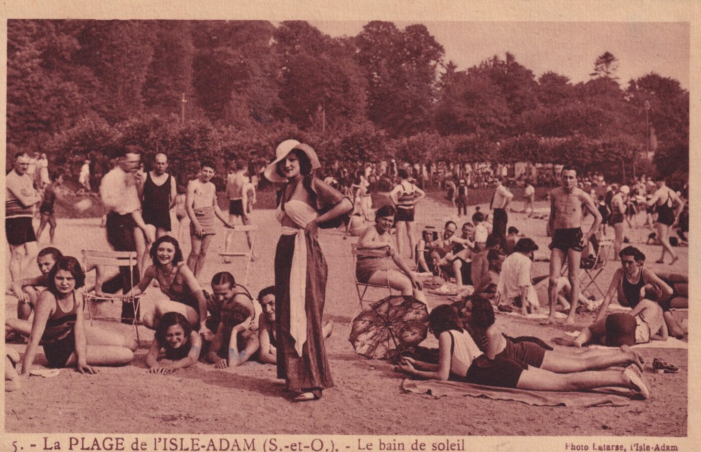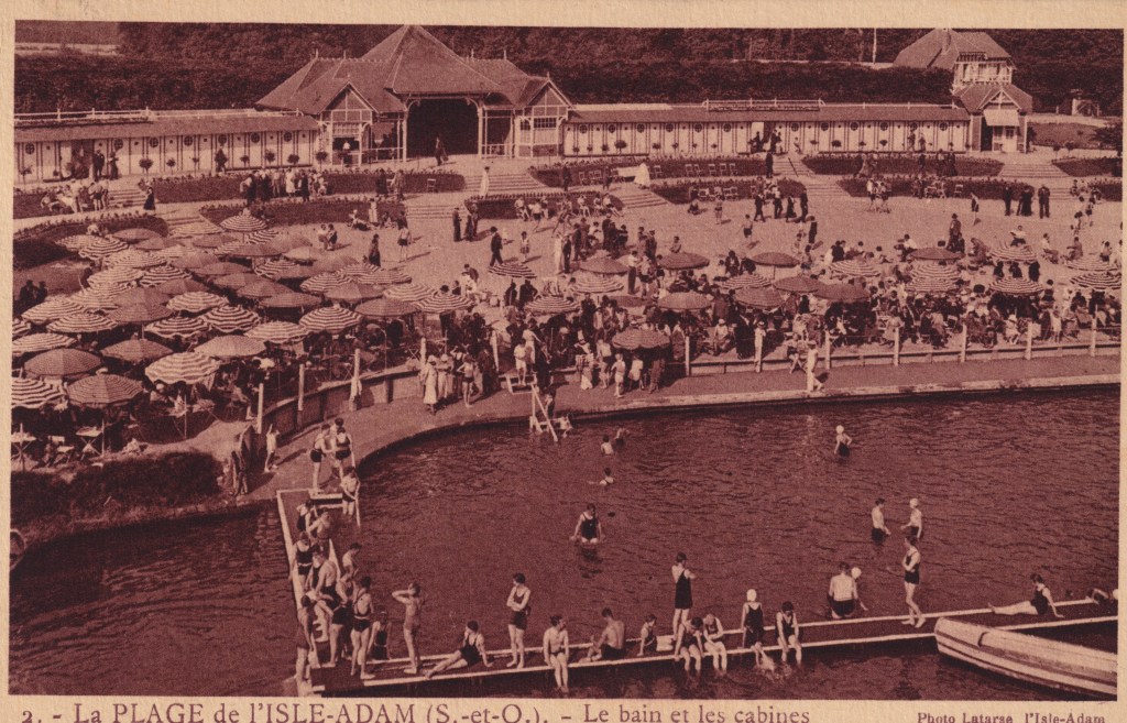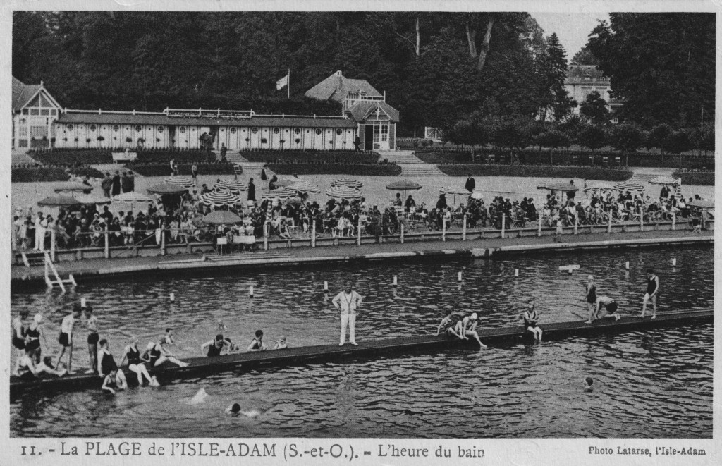La plage de l’Isle-Adam connaît une grande popularité dans les années 30. A une époque où les bords de mer ne sont accessibles qu’à une élite après des heures de voyage en train ou plus rarement en voiture, l’Isle-Adam donne accès à la baignade aux Parisiens.