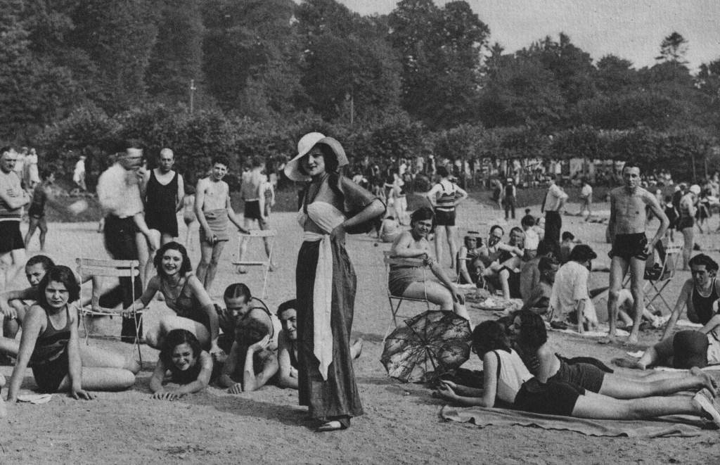 Par contre, le lieu attire surtout les jeunes gens. Les élégantes portent le pyjama de bain que Mistinguett a lancé dans les années 20 sur cette même plage.